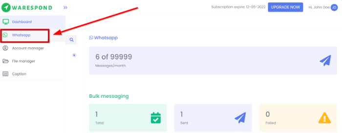 1.) Click on the WhatsApp menu item on the sidebar menu.